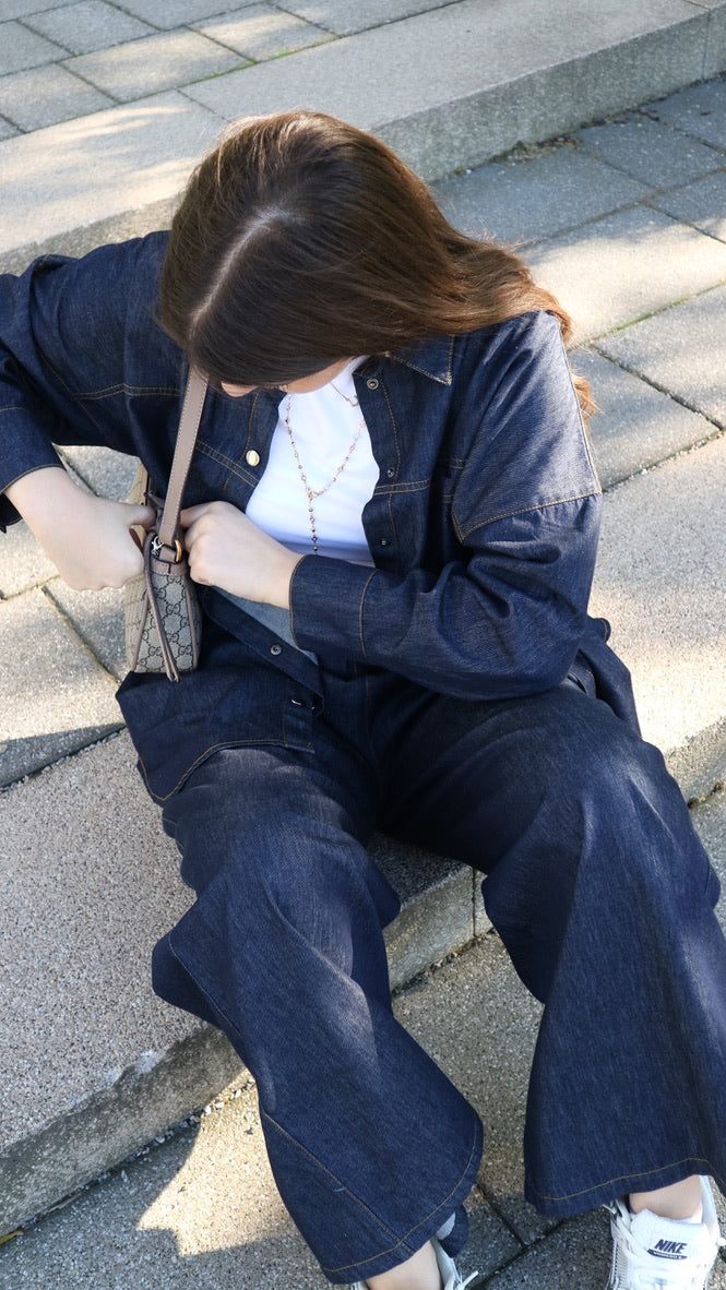 Our set is made from a softer, lightweight denim fabric crafted from pure cotton. It’s breathable, comfortable on the skin, and ideal for warm days or effortless layering.